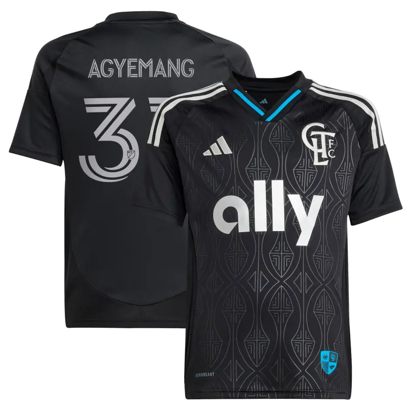 Youth Charlotte FC Patrick Agyemang adidas Black 2025 Fortress Kit Replica Player Jersey