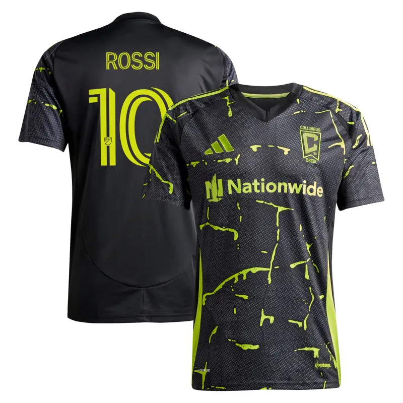 Men’s Columbus Crew Diego Rossi adidas Black 2025 The Goosebumps Kit Replica Player Jersey