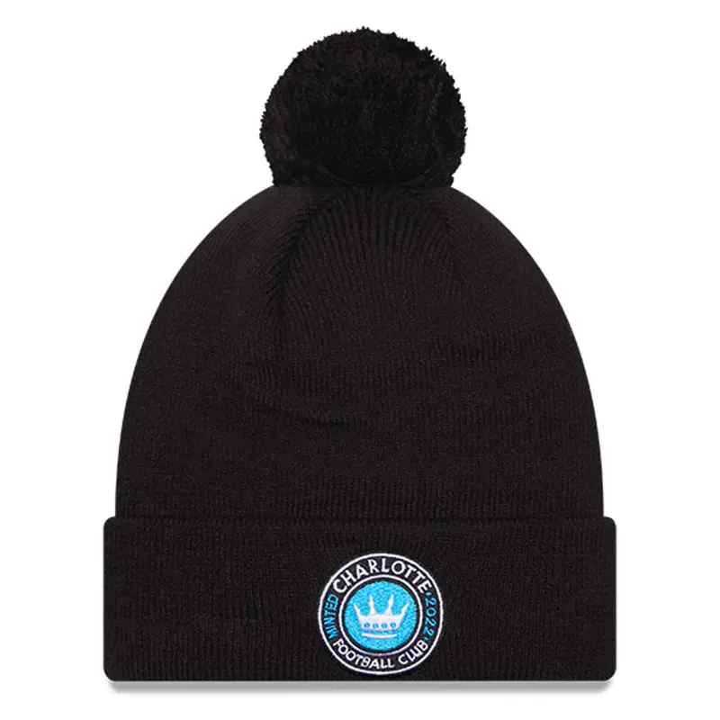 Men’s Charlotte FC New Era Black Jersey Hook Cuff Knit Hat with Pom