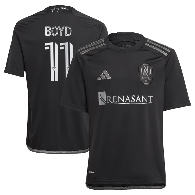 Youth Nashville SC Tyler Boyd adidas Black 2024 Man In Black Kit Replica Player Jersey