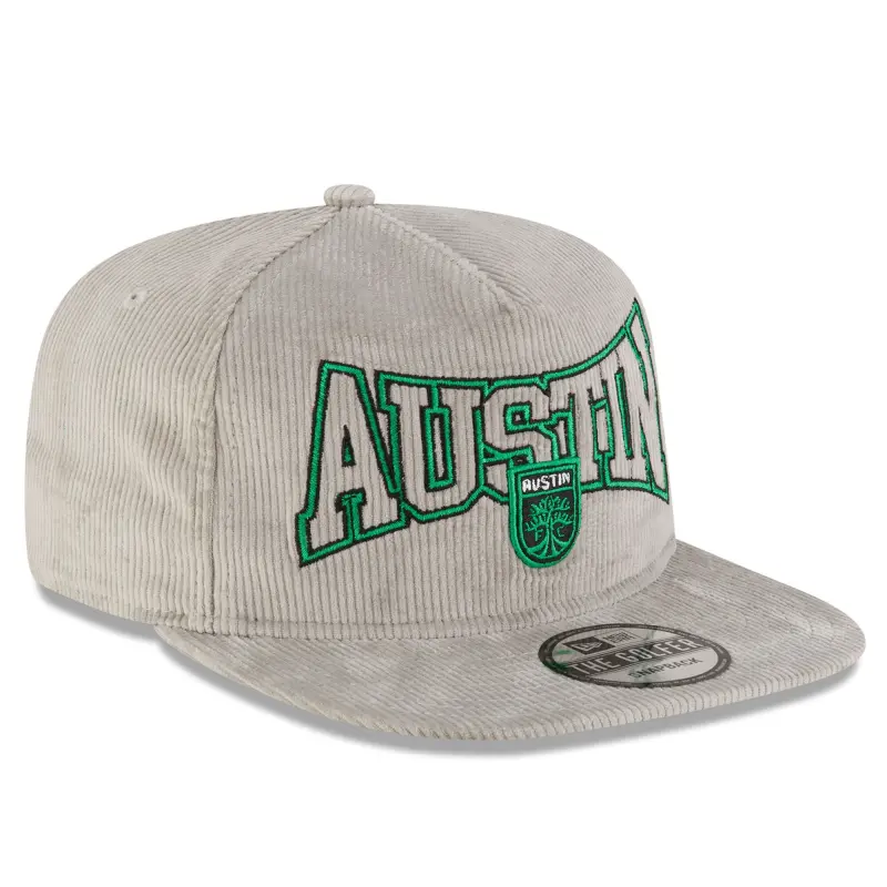 Show off your Austin FC pride in this Corduroy Golfer Adjustable Hat from New Era. This hat boasts a unique corduroy fabric, giving it a vintage look and feel that's perfect for any fan of the Verde and Black. Featuring a five-panel construction with mid and rear eyelets, this hat is designed for both style and breathability.