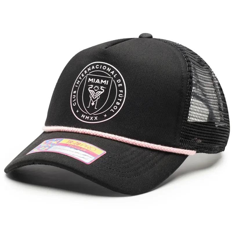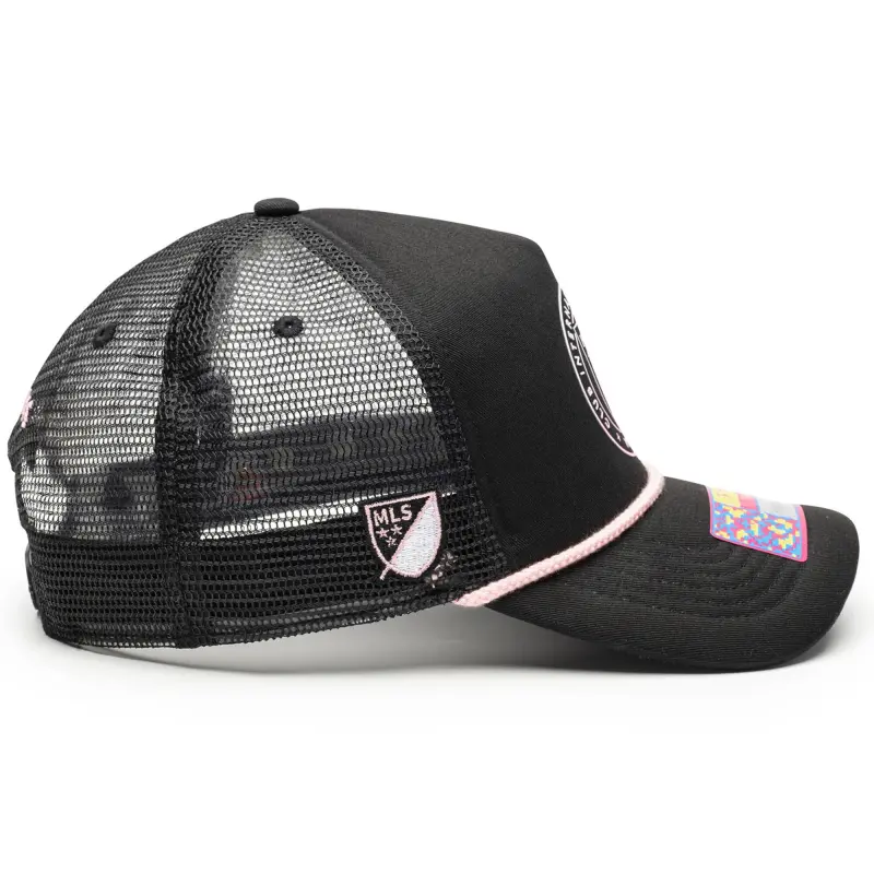 • Complete your Inter Miami CF game day look with this Atmosphere Adjustable Trucker Hat. This stylish trucker hat features a unique blend of materials, including a heat-sealed applique on the front and an embroidered patch on the right panel. Four mesh mid and rear panels provide breathability, ensuring you stay cool and comfortable whether you’re cheering from the stands or enjoying a sunny day out.